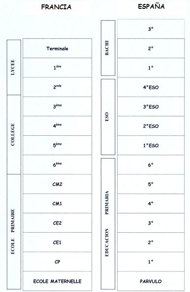 Aquí abajo, podéis ver un comparativo del sistema español y del francés.