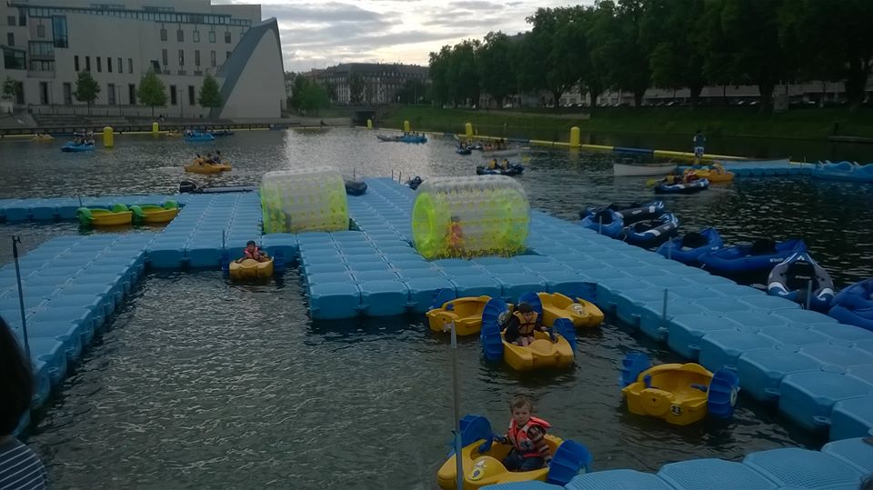 Hay una zona de playa con tumbonas, cubos, palas, etc para que los niños se diviertan. Se puede pedir a los chicos que están ahí raquetas y otros juegos que te dan gratuitamente. Pero lo que han hecho diferente es que han cerrado parte del río Ill y han puestos juegos infantiles y zona de mayores. La zona de niños es hasta los 12 años y pueden hacer barcos eléctricos, pedalinas de niños, pesca de patitos, kayak y una rueda muy divertida. Para los mayores hay kayak, pedalinas y barcas.